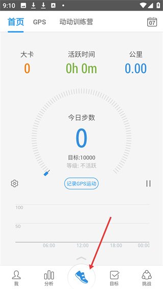 3、首頁顯示今日步數、消耗大卡、活躍時間等運動數據,可記錄GPS運動,幫助用戶實時監測日常運動情況。