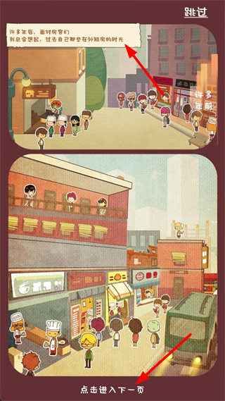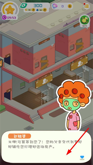 1、點擊進入下一頁,推進游戲劇情,了解租房經營的背景故事,開啟房產管理之旅。