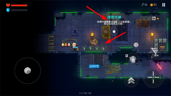 4、使用炸彈,投擲炸彈可摧毀障礙物或寶箱,用它能炸開石頭,獲取里面的獎勵,推進游戲進程。