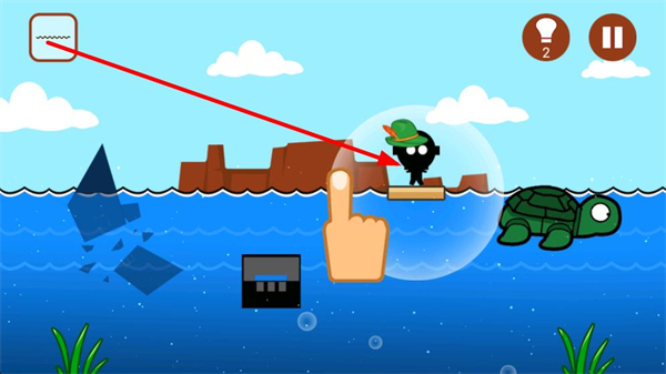 1、操控角色移動到木板上,開啟海底冒險的上岸進程,為后續解謎和探索做好準備。
