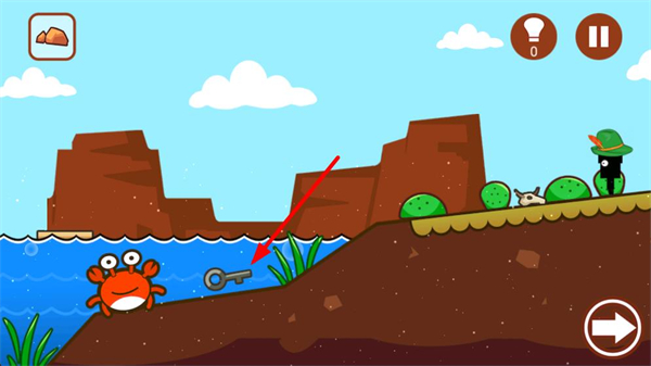 4、尋找并獲取螃蟹旁的鑰匙,解鎖新的區域或道具,完成海底冒險的解謎挑戰,獲取游戲獎勵。