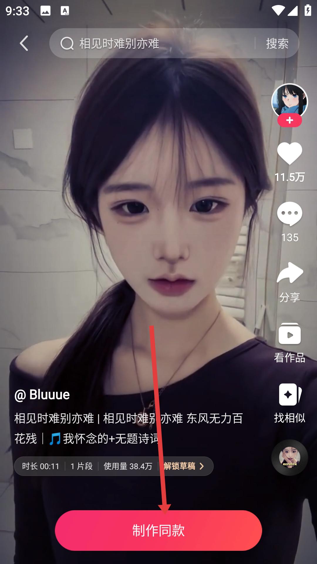 3、在模板詳情頁點擊剪同款,進入制作同款頁面,按照提示選擇素材,開始制作同款視頻。