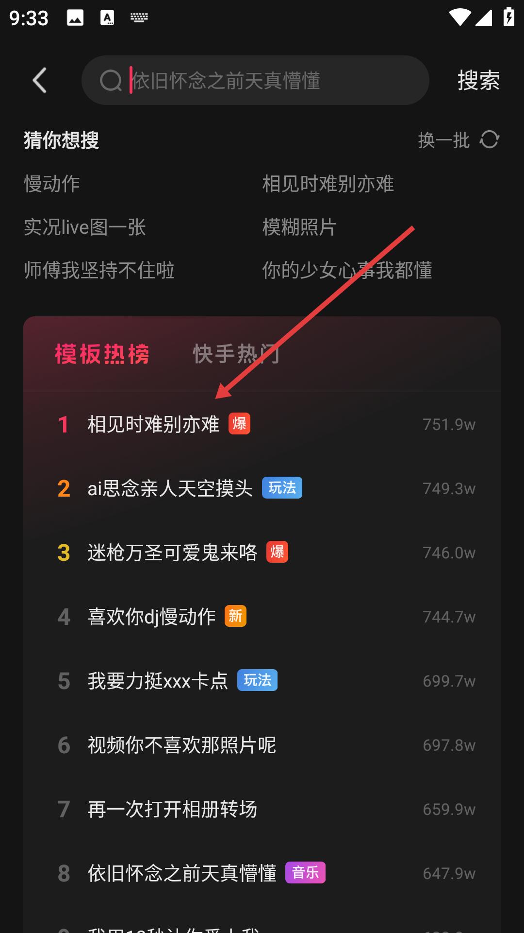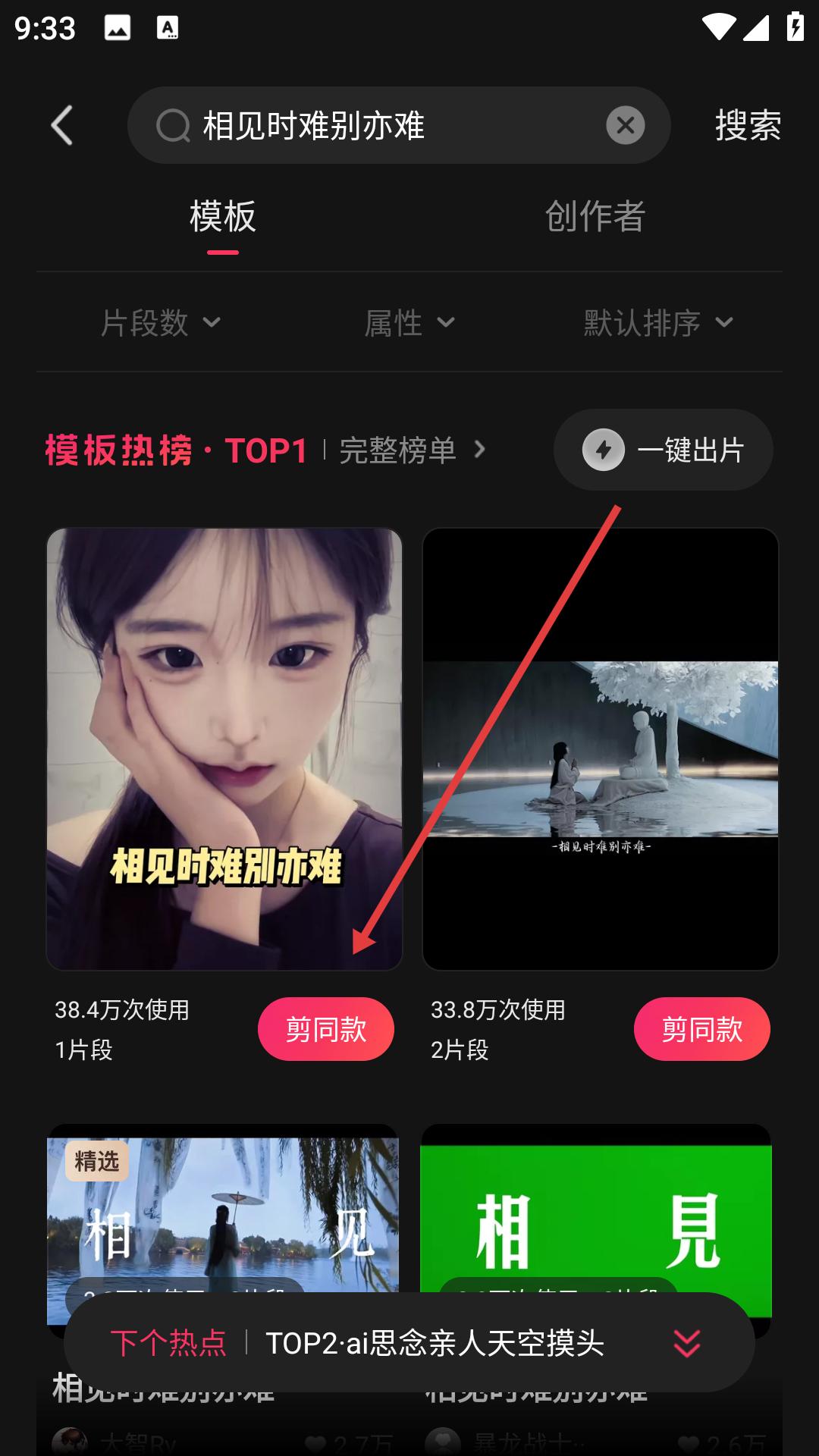 2、在搜索結果頁面瀏覽模板熱榜,選擇相見時難別亦難等熱門模板,進入模板詳情頁。