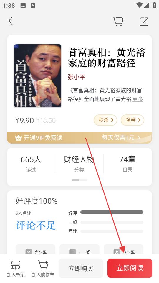 2、在書籍詳情頁,確認內容后點擊立即閱讀,進入閱讀界面,開始瀏覽書籍內容,感受閱讀樂趣。