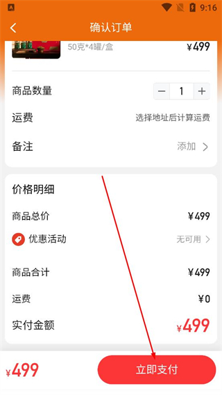 4、在確認訂單頁面,確認商品信息及實付金額無誤后,點擊立即支付按鈕,進入支付流程完成該商品的購買。