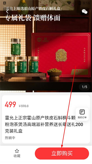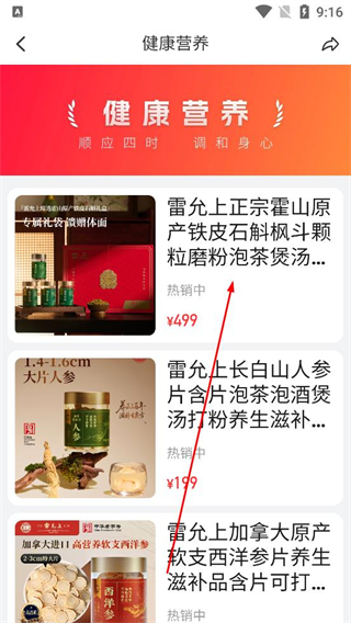 1、打開軟件進入健康營養板塊,瀏覽商品列表,選擇雷允上正宗霍山原產鐵皮石斛條目,點擊進入該商品的詳情頁面。