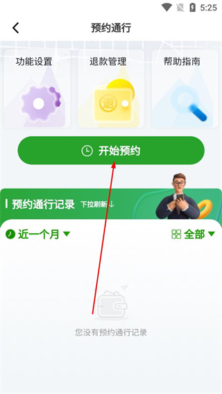 3、簽約完成后進入預約通行功能頁面,找到開始預約按鈕并點擊,準備發起高速通行的預約。