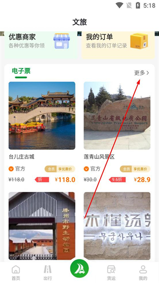 1、打開暢和通進入文旅頁面,在電子票板塊點擊更多按鈕,進入景區電子票列表頁面,可查看多款景區門票信息。