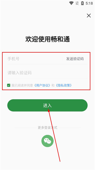 4、在登錄界面輸入手機號點擊發送驗證碼,填入收到的驗證碼,勾選同意相關協議,準備完成登錄。