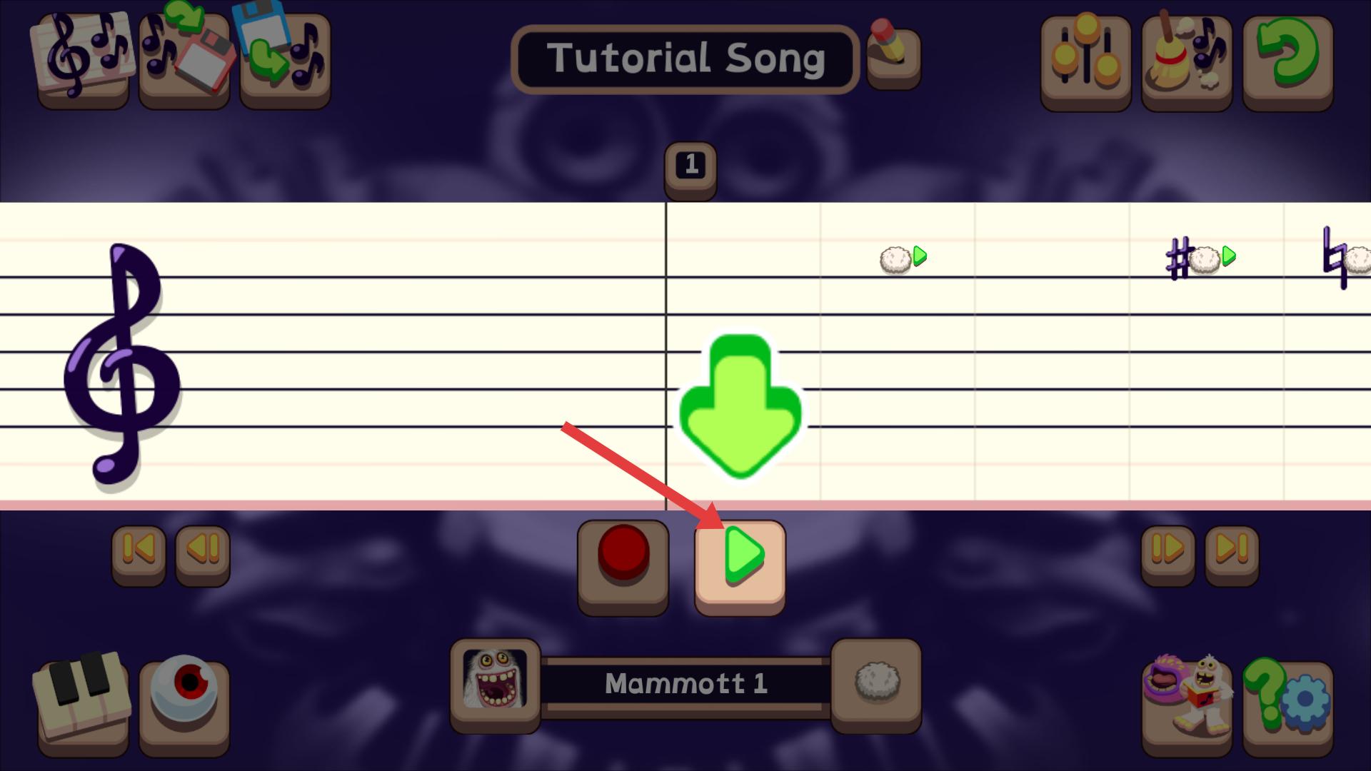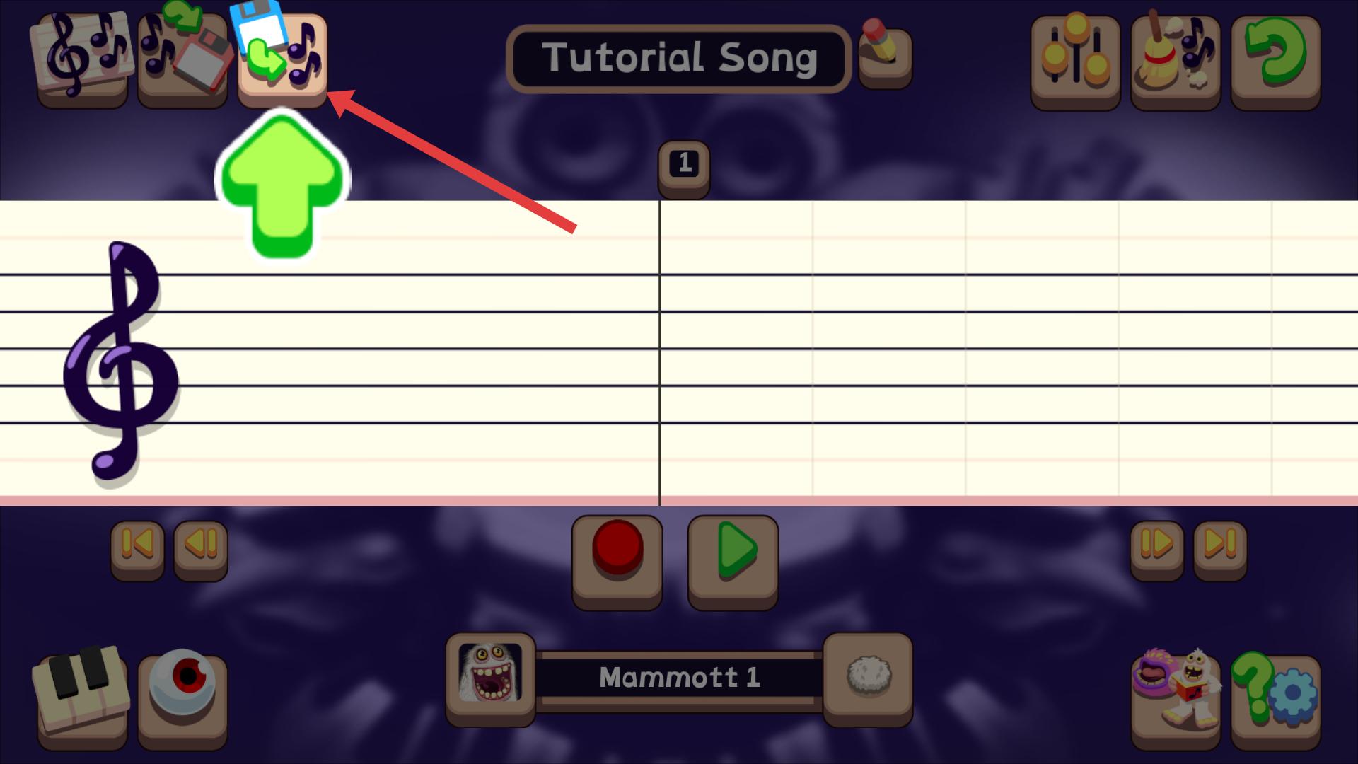 1、在樂譜界面,點擊上方帶綠色箭頭的音符圖標,可添加音符到樂譜中,為創作音樂旋律奠定基礎,開啟音樂創作的第一步。