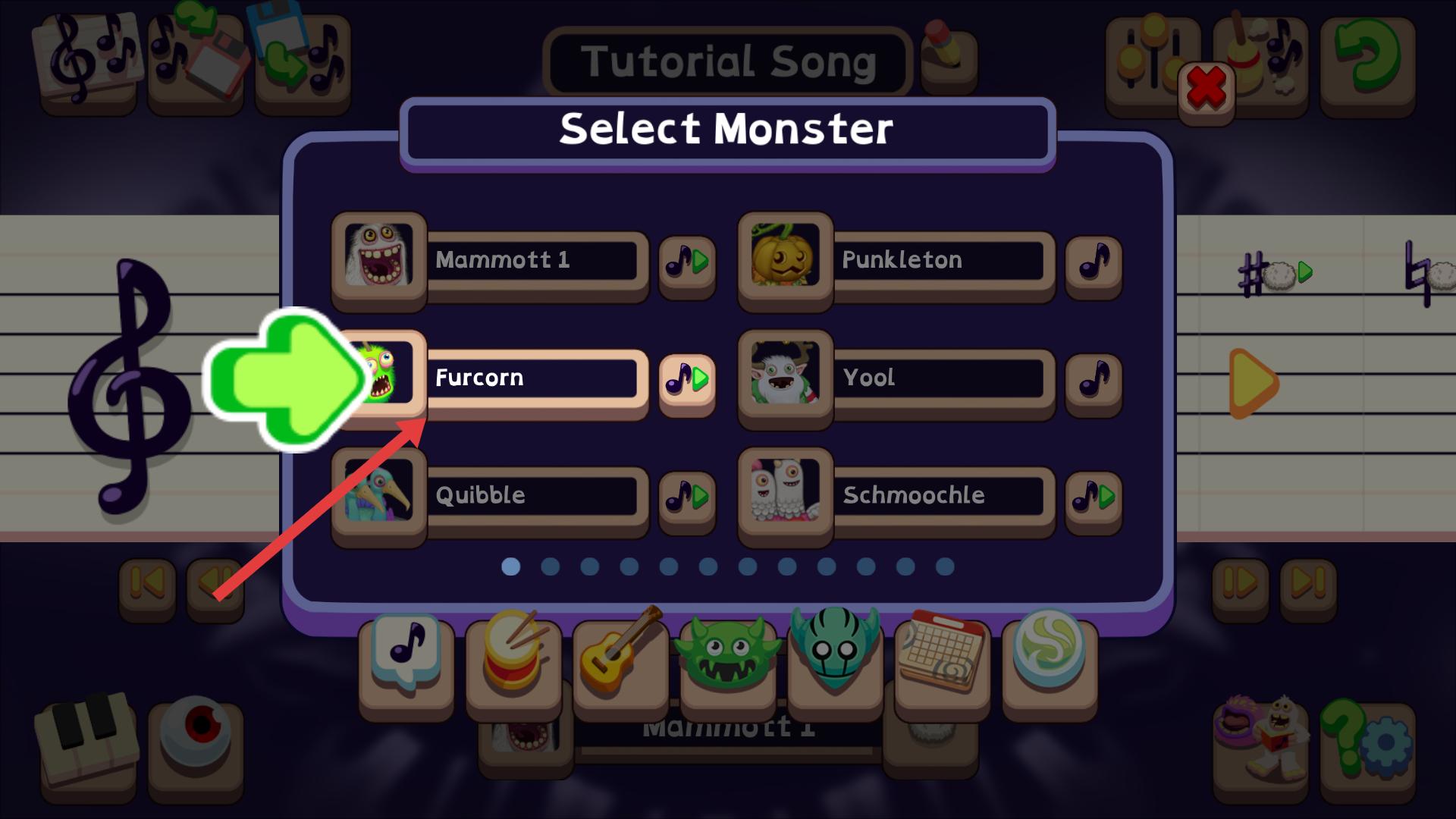 3、在Select Monster界面,選擇【Furcorn】怪物,該怪物會帶來獨特的音色,為樂譜增添別樣的音樂元素,豐富音樂創作。