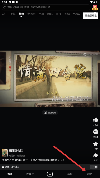 1、打開西瓜視頻,進入首頁在精選板塊瀏覽各類視頻內容,如短劇囚雀啄冠時等,點擊屏幕下方首頁按鈕,可快速回到首頁初始界面。