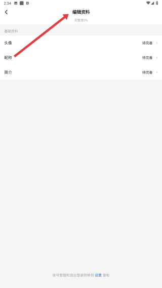 4、進入編輯資料頁面后,可對頭像、昵稱、簡介等基礎資料進行補充完善,打造個性化的個人資料。
