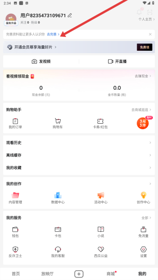 1、打開西瓜視頻,在首頁點擊右下角我的,進入個人頁面,準備進行資料編輯操作。