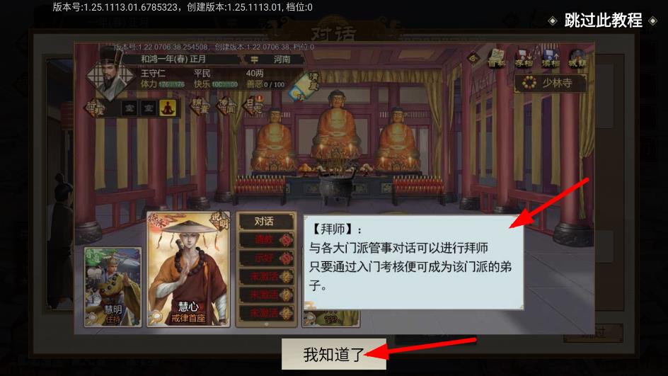 4、與門派管事對話進行拜師,通過入門考核成為門派弟子,學習門派技能,提升角色戰力,闖蕩江湖。