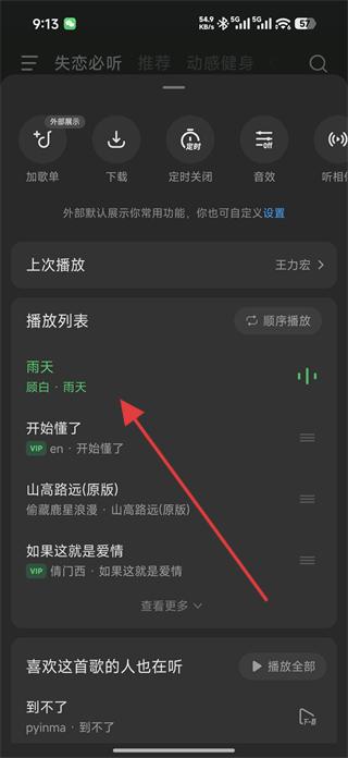 3、進入播放列表頁,可查看當前播放的歌曲和后續待播放的歌曲如開始懂了等,了解播放順序。