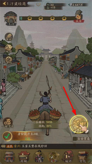 1、進行自動貿易,貿易時門客賺錢,損耗有比例,自動貿易提升賺錢效率,積累財富。