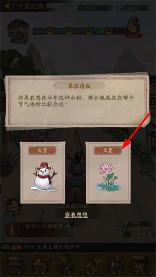 3、會遇到果農請教等問題,需選擇正確答案,如水稻播種節氣,回答正確獲取獎勵,助力經營。