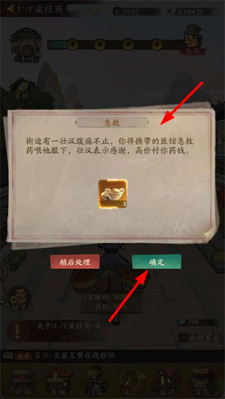 2、貿易過程會遇到急救等事件,選擇確定處理后可獲取獎勵,提升游戲收益,豐富經營體驗。