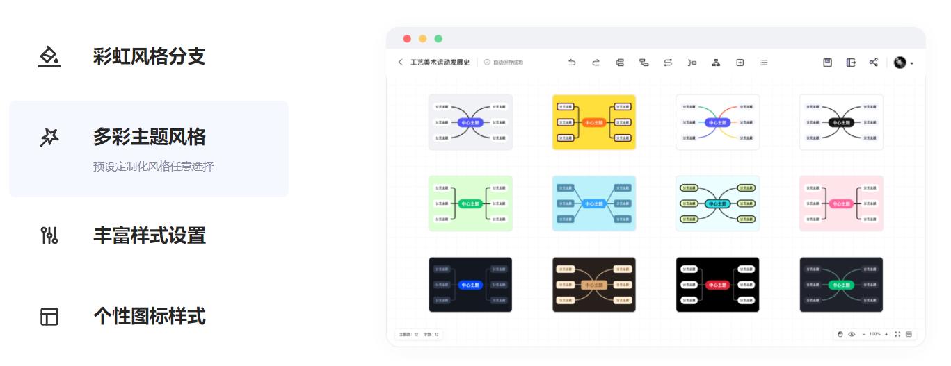 4、美麗主題圖標與充足的創作權限相結合,輕松打造個性化思維導圖。