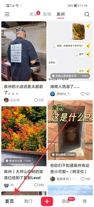 1、進入軟件首頁瀏覽泉州相關的發現內容,如泉州小店、大坪山欒樹等帖子,選擇感興趣的內容,開啟社交互動流程。