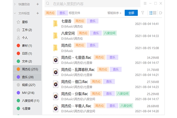 根據時間、規則等文件夾進行組織,同時該軟件還具有本地文件搜索、文件標簽。