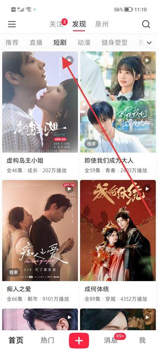 4、互動完成后切換到短劇分類,瀏覽虛構島主小姐等短劇內容,選擇感興趣的短劇觀看。