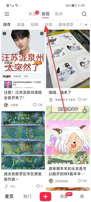 2、在發現頁面選擇動漫分類瀏覽如喜羊羊相關的動漫內容,點擊感興趣的動漫帖子,進入詳情頁,開啟內容互動流程。