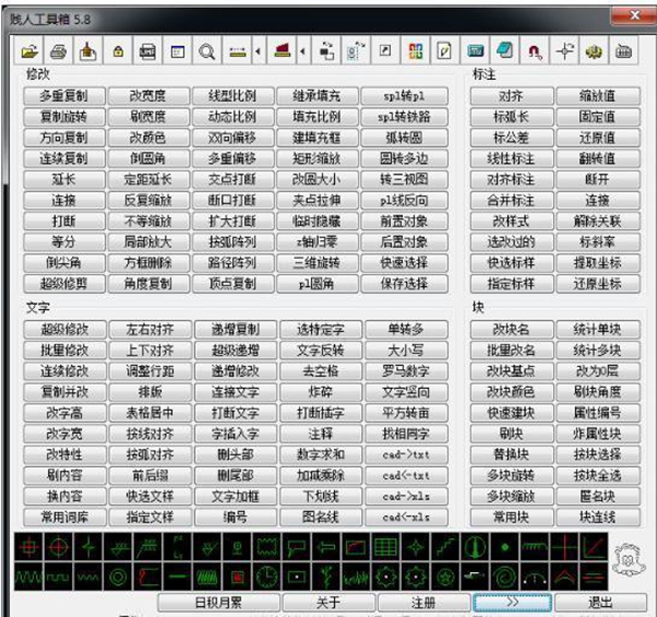 賤人工具箱具有近100種修改、注釋、文本、塊等修改繪圖功能。