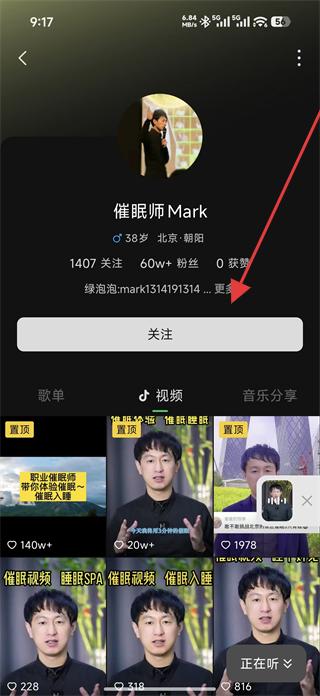4、若對創作者的內容感興趣,進入創作者主頁,可查看其關注數、粉絲數等信息,點擊關注按鈕。