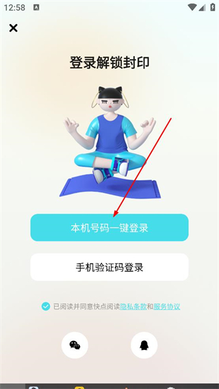 1、打開快點閱讀APP,進入登錄頁面,選擇本機號碼一鍵登錄,完成賬號登錄。