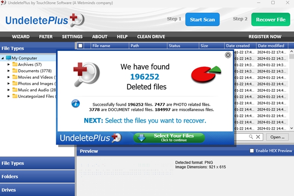 快速掃描引擎,一個典型的硬盤驅動器可以在幾分鐘內掃描可恢復的文件,簡單處理。
