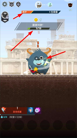 2、遇到名為布爾的敵人,界面提示攻擊10次,需完成攻擊次數要求來擊敗該敵人,同時可獲得金幣。