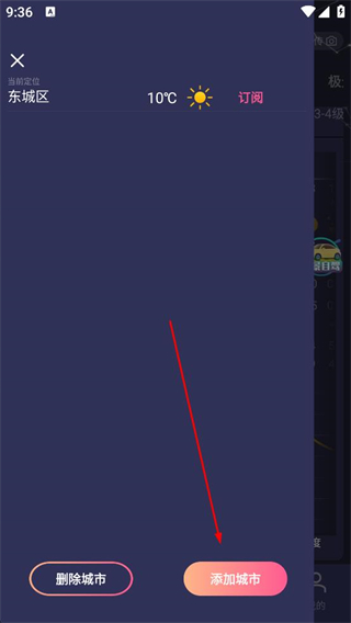3、進入城市管理界面可選擇刪除已有城市,或點擊添加城市按鈕,新增想要查看天氣的城市,豐富城市天氣監測列表。