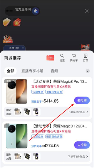 榮耀商城app怎么在直播間搶購手機