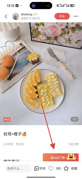 2、在筆記詳情頁面可對筆記進行點贊操作,也可查看評論區的互動內容,參與美食分享的交流討論。