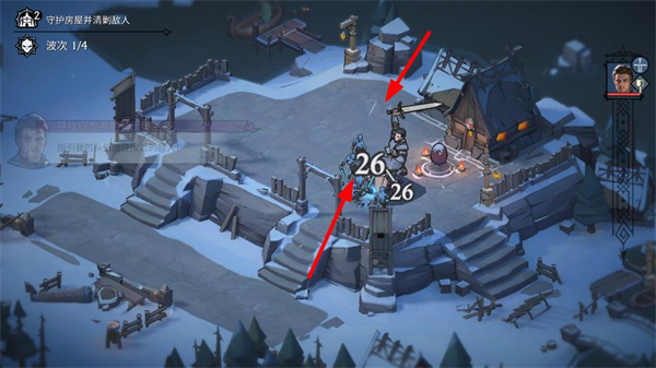 2、操控隊伍與敵人交戰,通過攻擊削減敵人血量,逐步消滅敵人,推進戰斗波次,守護房屋安全。