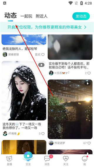 4、切換到動態頁面瀏覽其他用戶發布的內容,可查看動態詳情,或點擊發動態按鈕發布自己的內容。