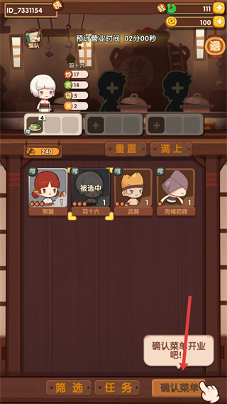 4、選好廚師和菜譜后,點擊確認菜單,即可開業經營餐廳,開始積累營業時長,體驗餐廳經營的過程。