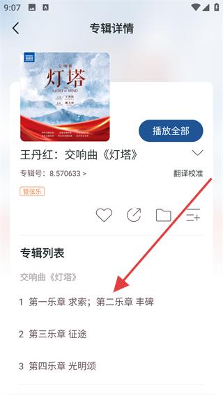 1、在KUKE音樂界面找到專輯燈塔,點擊進入可查看專輯詳情,包括專輯編號、翻譯校準等信息,還能看到專輯列表里的各樂章曲目。