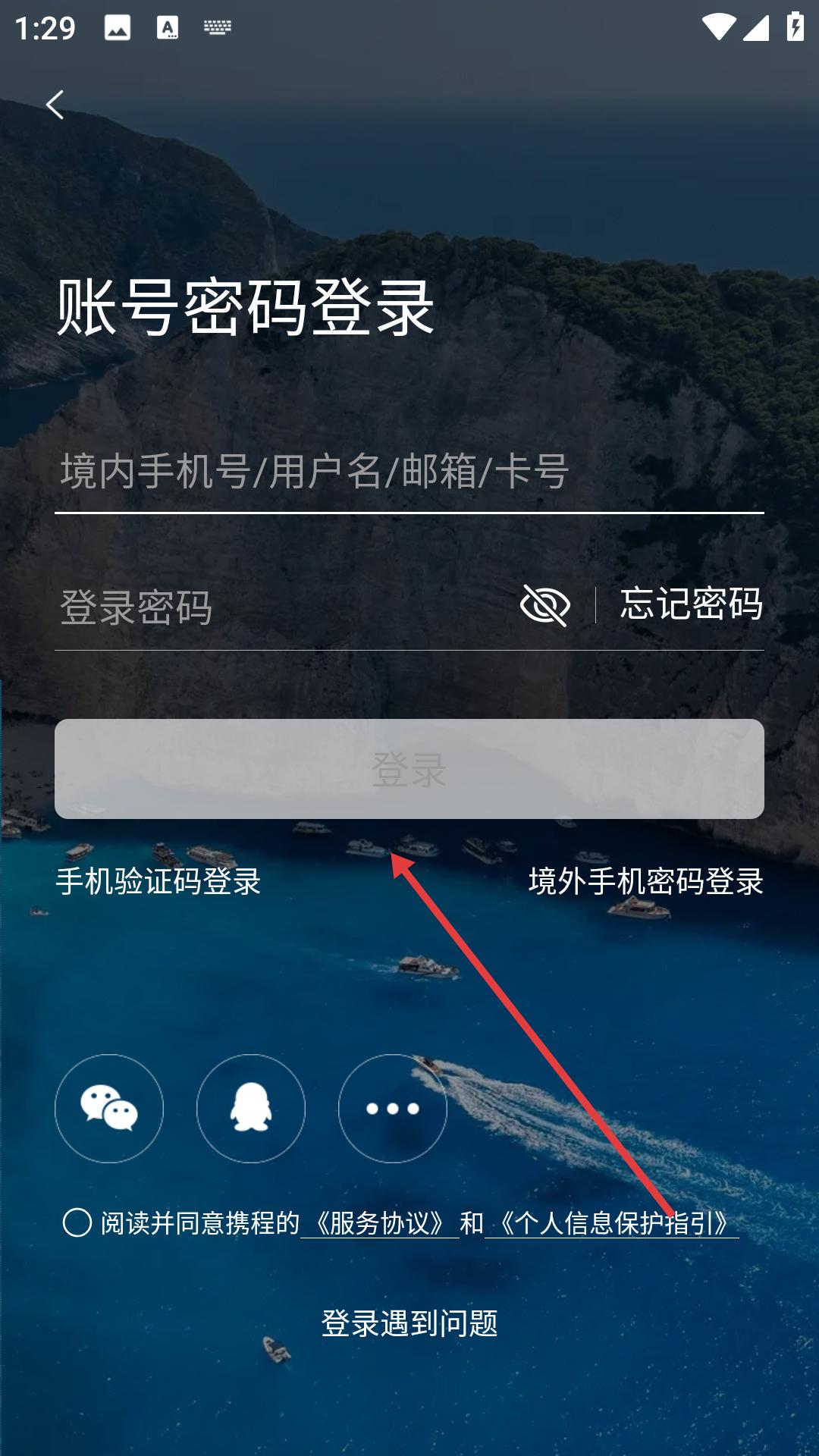 3、攜程旅行賬號密碼登錄頁面,可輸入境內手機號等賬號信息和登錄密碼登錄,也可選擇手機驗證碼登錄或境外手機密碼登錄,還可使用第三方賬號登錄。