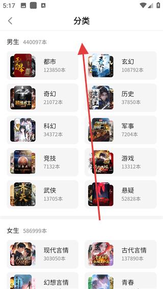 1、進入分類頁面看到男生和女生分類下的各類小說,點擊玄幻分類,進入玄幻小說列表頁面。