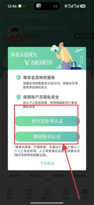 4、登錄后若彈出我的卡券和優惠券合并的提示,點擊去認證,選擇一種認證方式。