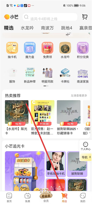 4、進入周邊板塊可查看抽卡機、魔力盒等功能,瀏覽熱賣推薦的水龍吟粼光卡、披荊斬棘珍藏卡等商品。