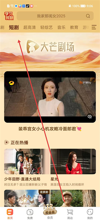 2、進入首頁可選擇短劇、超高清等分類,瀏覽大芒劇場的短劇內容,如裝乖宮女攻略冷面郎君等熱播劇。