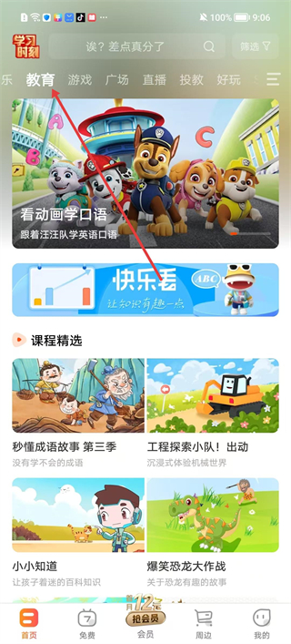 3、點擊教育分類可查看看動畫學口語、秒懂成語故事等課程,讓知識學習更有趣。