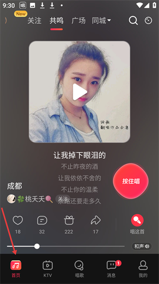 1、首頁呈現成都等歌曲內容,有按住唱功能,還可點贊、評論、送禮、分享,互動性強,方便用戶參與。