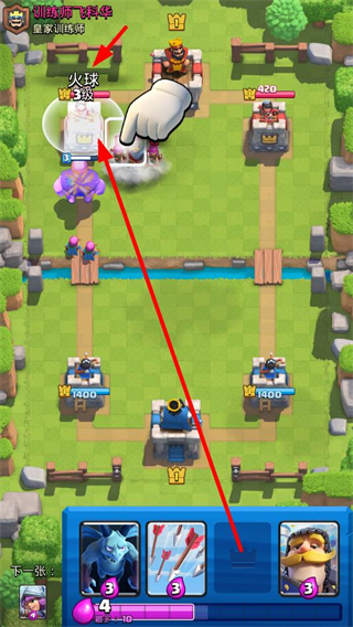 2、火球等法術可造成直接傷害,在對戰里合理使用法術,消耗敵方兵種或建筑血量。