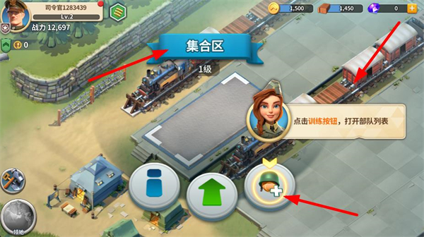 1、在集合區點擊訓練按鈕,打開部隊列表,訓練步兵、裝甲車等部隊,組建軍事力量,提升戰力。