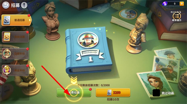 3、在招募界面進行免費招募,獲取新軍官,豐富軍官陣容,提升部隊指揮和戰斗能力,增強整體實力。